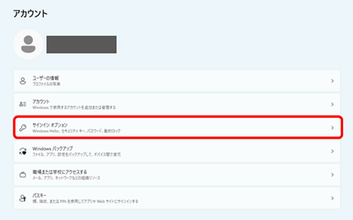 「サインイン オプション」を左クリックします。