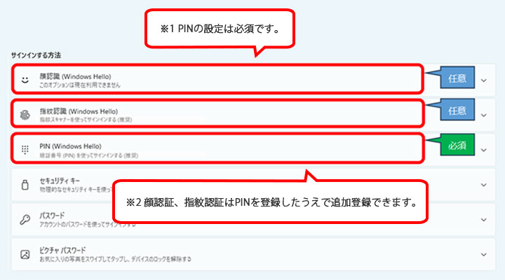※4 PIN(Windows Hello)が設定されていない場合、通常はパソコンのロック解除に使用するパスワードです。