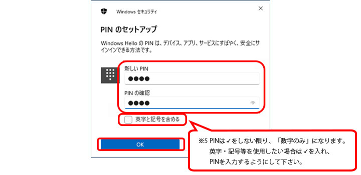 次に、PINの入力を求められるので、任意のPIN(※5)を入力して、OKをクリックします。