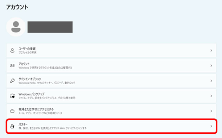 「パスキー」を左クリックします。