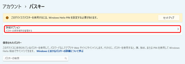 設定2:「パスキー管理オプション」の設定
